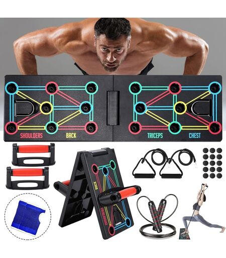 Protégez le poignet Util z la planche push up pour effectuer des exercices de push up pour éviter d'appuyer la paume directement sur le sol et éviter d'endommager les poignets par la compression articulaire. Dans le même temps, le centre de gravité du corps peut être abaissé pendant le processus d'entraînement et les muscles peuvent être étirés et entraînés plus efficacement. Les gants de fitness équipés offrent une protection plus efficace. Entraînement multifonctionnel Sport maison materiel 12 en 1, rouge = épaules, jaune = dos, bleu = poitrine, vert = bras. La planche push-up a un excellent système de push-up et un système d'exercices de traction, qui peuvent être utilisés pour entraîner efficacement les muscles des épaules, des bras, du dos et de la poitrine grâce au système de push-up. Vous pouvez également entraîner les muscles des jambes et des fessiers grâce au système de tension afin d'avoir une courbe corporelle parfaite. Forte résistance antidérapante Le fitness materiel est fait de matériaux en fibre de carbone respectueux de l'environnement de haute qualité, avec une capacité de charge de 120 kg. Tapis en silicone antidérapant haute résistance à contact complet, qui peut être installé dans 12 positions à l'arrière pour empêcher la planche d'entraînement de bouger, adapté à tous les sols. Des gants équipés peuvent également empêcher les paumes moites de glisser sur le bloc de support. Simple et pratique Convient aux personnes de plus de 12 ans, aux hommes et aux femmes, au personnel de fitness professionnel et aux amateurs de fitness amateurs. Vous n'êtes pas obligé de passer un temps précieux ou de l'argent dans la salle de sport. La planche push-up a un design pliable, est petite, facile à transporter et à ranger. Vous pouvez toujours util r des planches de pompes pour les exercices de yoga, la musculation ou les voyages de perte de poids. Garantie de 6 mois Si vous avez des questions sur Push Up Board, n'hésitez pas à nous contacter. Notre équipe d'assistance répondra et fournira un support technique dans les 24 heures. Remboursement complet de 15 jours, garantie de 6 mois et support technique de 365 jours. Vôtre satisfaction est nôtre priorité absolue. ...