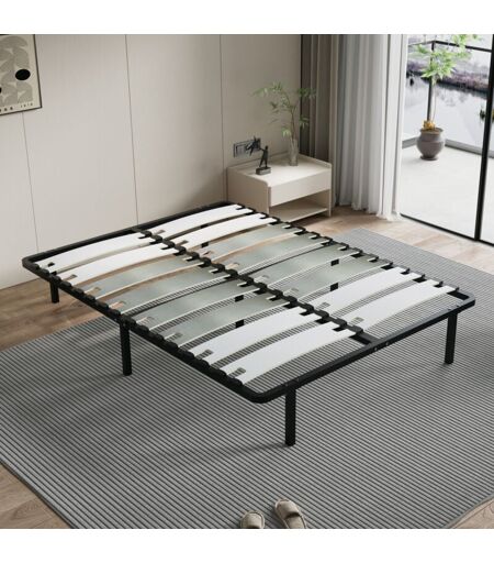 Description générale Sommier à lattes avec 7 pieds et 2x8 lattes, idéal pour un soutien optimal de votre matelas. Spécifications techniques Dimensions : 140 x 190 cm Matériau : lattes en bois Construction : acier renforcé avec pieds en acier Compatibilité et accessoires Compatible avec la plupart des matelas standards de 140 x 190 cm Accessoires non inclus Installation Le sommier est facile à assembler. Suivez les instructions fournies pour un montage rapide et sécurisé. Utilisation Utilisez ce sommier pour améliorer le confort de votre lit et prolonger la durée de vie de votre matelas. ...
