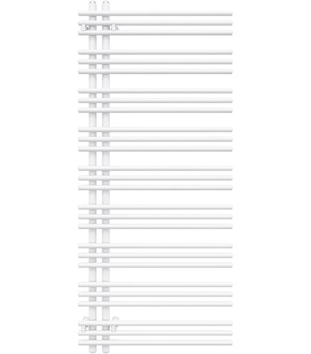 Zehnder Yucca radiateur design - référence ZLZY300358B1000 - YA-130-060 - 1304 x 47 x 578 mm - blanc RAL 9016 - tubes de précision en acier disposées horizontalement avec tubes carrés - soudures invisibles - soudé complètement grâce à la méthode de soudage à tête percée en croix - paquets de tubes composés chacun des 3 tubes horizontales bifurcant de façon asymétrique des tubes collecteurs verticals - possible de glisser les serviettes par le côté pour les sécher ou chauffer - version monocouche ou double couches - puissance thermique selon DIN E 442 - 4 x 1/2" connection aux extrémités des tubes collecteurs pour les circuits aller et retour, cartouche éléctrique chauffante et désaération - radiateur avec revêtement à poudre de combustion - livraison prête pour l'installation avec des consoles élégantes en couleur du corps du radiateur ...