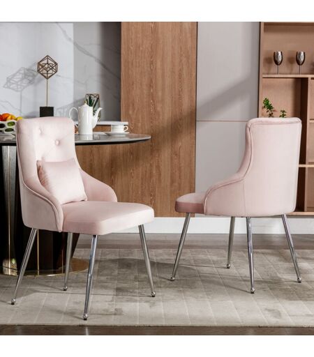 HOMMOO Lot de 2 chaises de salle à manger à motif de bouton, fauteuils rembourrés, avec pieds en métal, chaise de salon de chambre à coucher avec coussin de