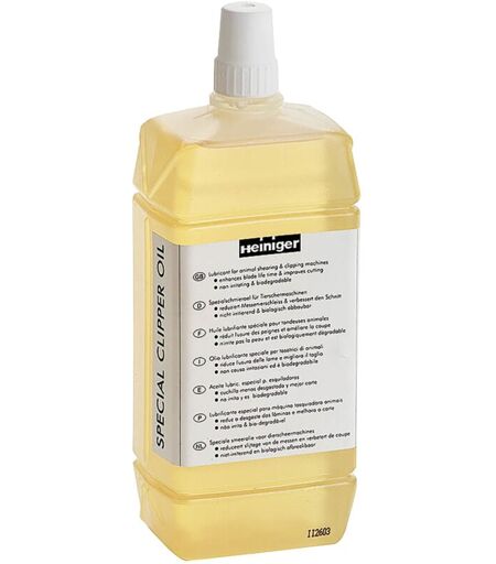 Huile spéciale pour tondeuse. Flacon de recharge, contenance de 500 ml. N'irrite pas la peau et est biologiquement dégradable. L'huile améliore la coupe et réduit l'usure des peignes. L'importance d'huiler la tondeuse : Huiler régulièrement la tondeuse est indispensable au bon fonctionnement de la tondeuse. Il faut l’huiler avant, pendant (toutes les 15 min) et après utilisation. L’huile Heiniger n’irrite pas la peau, est biologiquement dégradable, améliore la coupe et réduit l’usure des peignes. Le Gasoil n'est pas un lubrifiant et endommage les tondeuses . La garantie des tondeuses ne fonctionnera pas. ...