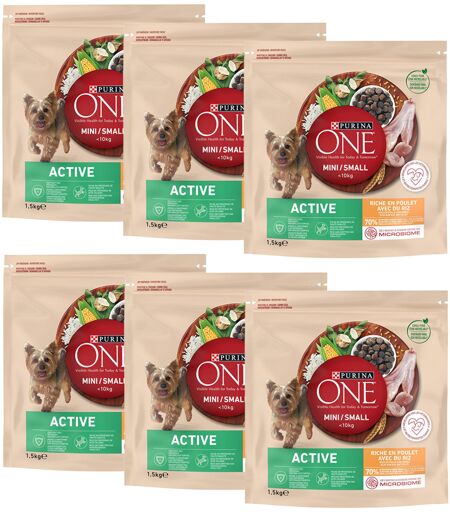Les croquettes PURINA ONE Mini Active poulet riz constituent un aliment complet adapté aux chiens de petites races. Leur recette a été spécialement élaborée pour répondre aux besoins des chiens de petites races jusqu'à 10 kg et leur fournit tous... ...