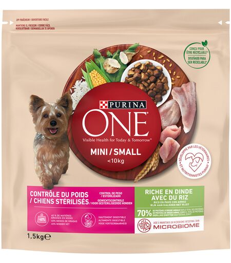 6x1,5kg PURINA ONE Mini Contrôle du poids /Chien stérilisés dinde, riz - Croquettes pour chien