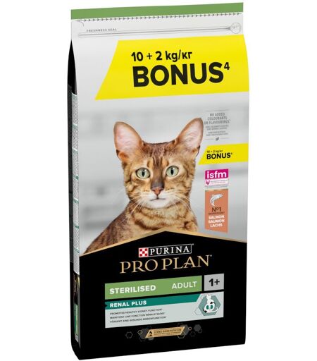 PURINA PRO PLAN Sterilised Adult Renal Plus saumon pour chat - 10 kg + 2 kg offerts !