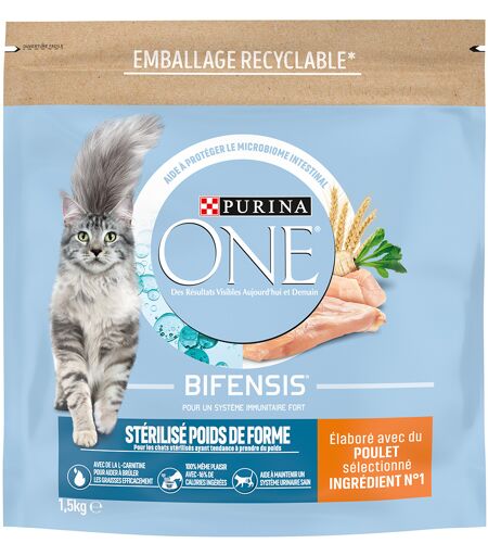 Après la castration ou la stérilisation, le métabolisme de votre chat change. Les croquettes PURINA ONE Chat Stérilisé au poulet constituent un excellent aliment qui aidera votre compagnon à rester en pleine forme. Elles sont préparées à base de... ...