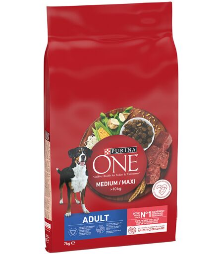 7kg PURINA ONE Medium/Maxi Adult bœuf, riz - Croquettes pour chien