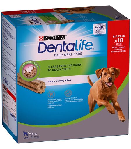 18 bâtonnets (6x106g) PURINA Dentalife à mâcher, pour chien de grande taille (25-40kg)