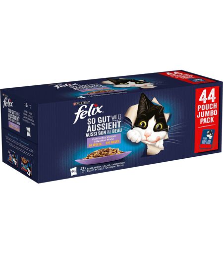 44x85g Mégapack Felix Tendres Effilés en gelée sélection viande et poisson - Pâtée pour chat