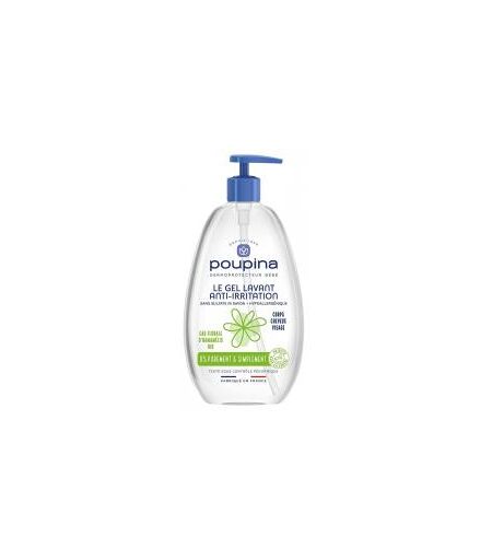Poupina le Gel Lavant Bébé Anti-Irritation - Sans Sulfate ni Savon - Hypoallergénique - Hamamélis - Corps Cheveux Visage - 97% d'Ingrédients d'Origine Naturelle - Vegan - Made in France - 485 ml - Flacon-Pompe 485 ml