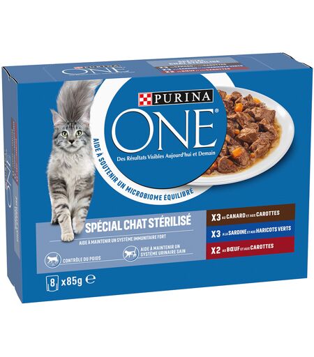 Lot mixte PURINA ONE Spécial Chat Stérilisé 8 x 85 g - canard, bœuf, sardine