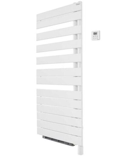 Description générale Le radiateur sèche-serviettes électrique FASSANE SPA de la marque Acova combine design élégant et performance. Avec une finition en époxy/polyester et une double protection anticorrosion, il est conçu pour durer. Son design asymétrique à droite facilite l'utilisation des serviettes. Avec une puissance de 750 W + 1000 W, il offre un confort thermique optimal dans votre salle de bains tout au long de l'année. Spécifications techniques Dimensions (L x H x P) : 550 x 1248 x 113 mm Épaisseur des collecteurs : 1,5 mm Diamètre des collecteurs : 38 mm Soufflant intégré de 1000 W Finition : blanc (RAL 9016) et 50 coloris au choix Compatibilité et accessoires Connectable et contrôlable à distance via le programmateur Heatzy Elec'Pro Compatible avec l'application Acovacontrol pour un contrôle via Bluetooth Fonctionnalités compatibles avec appareil Android et iOS Installation Consoles de fixation hautes soudées à l'arrière pour une installation discrète Installation murale ...