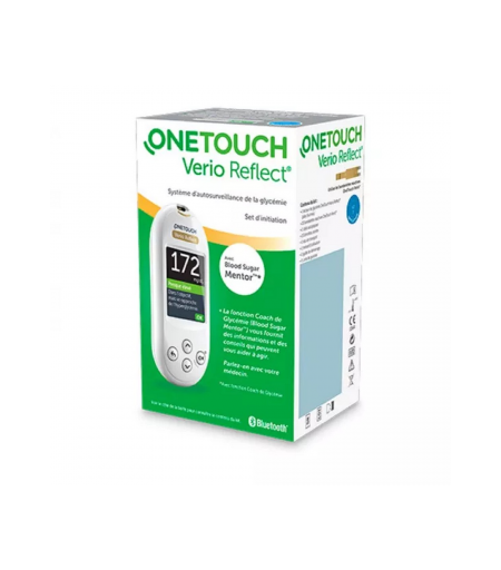 Le système d'autosurveillance de la glycémie OneTouch Verio Reflect est destiné à être utilisé pour l'auto-test, en usage externe (diagnostic in vitro) par les personnes diabétiques pour la mesure quantitative de la glycémie (sucre) dans les échantillons de sang total capillaire frais prélevés sur le bout du doigt afin de faciliter la surveillance de l'efficacité du suivi du diabète. Le lecteur de glycémie OneTouch Verio Reflect analyse et suit les tendances glycémiques, et fournit des conseils (messages éducationnels, comportementaux et motivationnels) pour aider à comprendre et à gérer les niveaux de glycémie ainsi qu'à détecter les excursions supérieures ou inférieures à un objectif souhaité. Le lecteur est également conçu pour communiquer sans fil avec les applications « diabète » compatibles pour saisir, transférer et analyser les données et informations concernant la glycémie afin d'aider la prise en charge du diabète. Dans chaque kit d’initiation : - Lecteur OneTouch Verio Reflect (2 piles bouton au lithium CR032 incluses) - 10 bandelettes réactives OneTouch Verio - Stylo autopiqueur OneTouch Delica - 10 lancettes stériles OneTouch Delica - Manuel d’utilisation - Guide de démarrage - Étui de transport ...