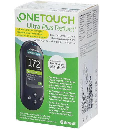 Contenu de la livraison: Lecteur de glycémie OneTouche Zltra Plus Reflect. 10 bandelettes réactives OneTouch Ultra Plus. Stylo autopiqueur. 10 lancettes stériles. Étui de transport Manuel d'utilisation. Guide de démarrage. Caractéristiques du produit: Change votre regard sur la glycémie Détermine un calendrier des événements et activités liés à votre glycemie et met en évidence les tendances glycémiques. Description du produit: Pour auto-test. Pour la mesure quantitative de la glycémie dans le sang total capillaire. Conseils d'utilisation: Lire la notice. ...