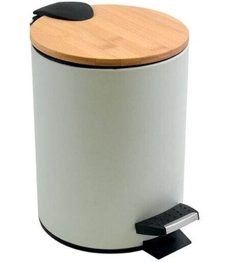 Poubelle à pédale Acier & Bambou adonis 3L Blanc Spirella