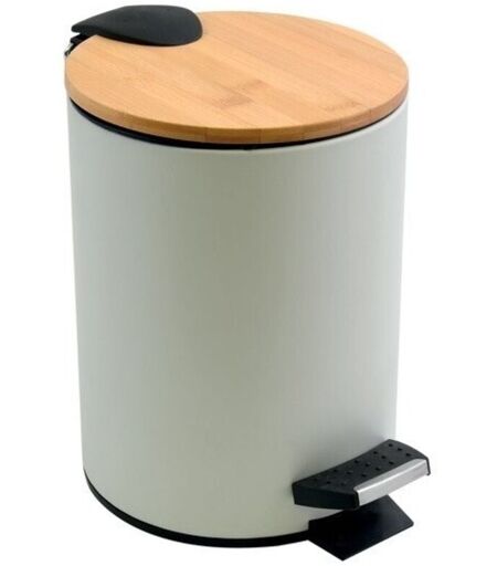 Poubelle à pédale Acier & Bambou adonis 5L Blanc Spirella