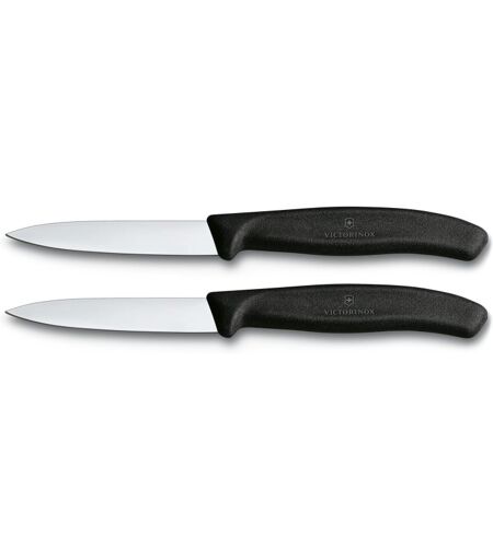 2 couteaux d'office victorinox noirs lames 8cm pointe milieu
