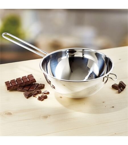 Grâce à son crochet, ce bol pour bain-marie de la marque Moha, se pose simplement sur n'importe quelle casserole et reste bien en place. Le récipient parfait pour le bain-marie Un bol idéal pour réaliser en douceur et facilement toutes vos préparations sucrées ou salées ! Et sa poignée bien longue permet de le saisir, sans se brûler. Caractéristiques Matière : acier inoxydable Longueur du manche : 17,5 cm Dimensions : 10 x 20 cm Contenance : 2 l Idéal pour : les sauces béarnaises, hollandaises, les nappages chocolat… Points forts : Cuisson douce et homogène / Belle contenance / Grande poignée ...