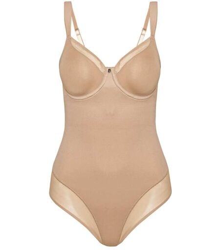 Shaping body with Comfort Wire technology. Tapered, soft brushed, padded straps with clean edges. Decorative mesh inserts on the cup and leg opening. Bonded back leg opening, and double layered mesh on the front leg opening to ensure comfort and no VPL. hook-and-eye gusset. Silver crown branding at centrebust. Lavable en machine. 60% Nylon, 37% Elasthanne, 3% Polyester. ...