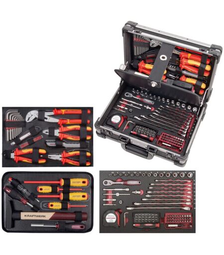Contenu de la livraison :Malette à outils PRO LINE, 1/4'', avec outils VDE, 123 pièces.Clés à molette : 8 - 10 - 11 - 12 - 13 - 14 - 17 - 19 mmClé à cliquet 1/4''Embouts de douille 1/4'' (6 pans) : 3,5 - 4 - 4,5 - 5 - 5,5 - 6 - 7 - 8 - 9 - 10 - 11 - 12 - 13 - 14 mmRallonge 1/4'' de 50 + 100 mmPoignée coulissante 1/4''Cardan 1/4''Adaptateur 1/4'' pour emboutsBoîte à embouts 1/4''Poignée à douille 1/4''Boîte à emboutsLampe de poche avec LEDJeu de clés Allen 1,5 - 2 - 2,5 - 3 - 4 - 5 - 6 - 8 - 10Pince combinée VDE 180 mmPince à long nez VDE 200 mmCoupe-câble VDE 160 mmPince multiprise VDE 250 mmTournevis à fente VDE 3,0 - 4,0 mmTournevis cruciforme VDE PH PH1 + PH2Marteau de serrurier 300 gCouteau à tapis avec lames de rechangeMètre à ruban 3 m Caractéristiques techniques: Ligne de produit: PRO LINECouleur: GrisPoids du produit: 7,9 kgLargeur du produit: 400 mmLongueur du produit: 133 mmNombre de pièces: 123Verrouillage: Verrouillage individuelSélection de matériau: AluminiumType ...