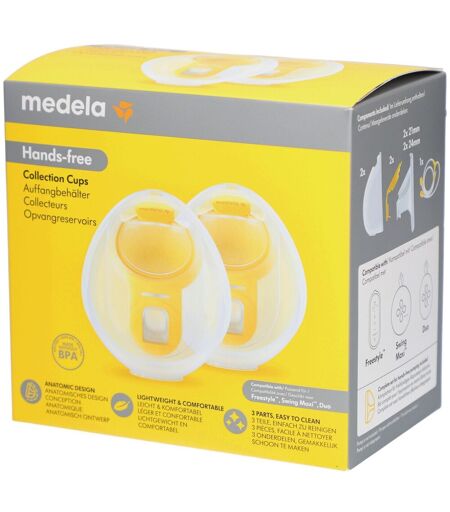 Profitez d'expression de lait aux mains libres grâce à l'ensemble de Collecteurs Hands-free compatible avec votre pompe Medela ! L'ensemble de collecteurs Hands-free vous permet de convertir votre tire-lait double classique (Freestyle Hands-free, Freestyle flex & Swing Maxi) en un tire-lait mains libres pour plus de flexibilité, vous permettant ainsi de personnaliser votre expérience d'expression. Ce set a été spécialement conçu pour que vous puissiez pomper discrètement et facilement tout en ayant les mains libres pour d'autres tâches.BénéficesConception anatomique : Les bonnets de recueil mains libres sont conçus pour s'adapter anatomiquement à la plupart des formes de seins et des soutiens-gorge d'allaitement et sont dotés de technologies Medela bien étudiées, telles que les protections mammaires inclinées à 105 degrés.Léger et confortable : les bonnets de recueil du lait portables sont parmi les plus légers disponibles, ce qui vous permet d'avoir les mains libres pour faire plusieurs choses à la fois. Conçues pour ne pas peser sur vos seins, elles permettent de conserver dans le soutien-gorge la forme naturelle de votre poitrine. 3 parties à nettoyer : Il vous facilite la vie grâce à ses 3 parties faciles à nettoyer et à assembler. Il peut être lavé au lave-vaisselle, ce qui facilite votre emploi du temps, avant et après le pompage. ...