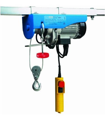 Palan à utilisation intermittente S3 20 % 10 min Télécommande d’une longueur de 1.80 m environ Données techniques Tension moteur 230 volts Puissance moteur 0.5 kW Charge levée 125/250 kg Vitesse de levage 10/5 m/min Course de 12 m Hauteur de levage 6 m Longueur de câble 12 m Câble Ø 3 mm Encombrement LxPxH 315x130x160 mm Poids 11.5 kg ...