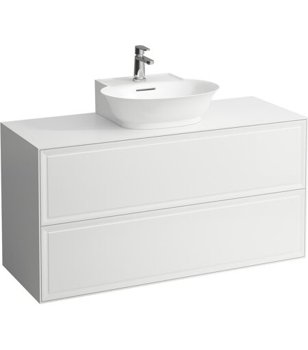 LAUFEN Le nouveau meuble à tiroirs / buffet H4060240856311 117,5x60x45,5cm, 2 tiroirs, lave-mains au milieu, blanc brillant