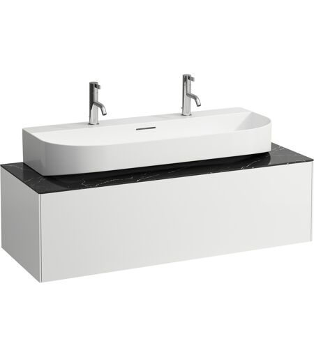LAUFEN match0 Sonar tiroirs / buffet H4054610341431 117,5x34x45,5cm, découpe au milieu, vasque à poser, blanc mat / Nero Marquina