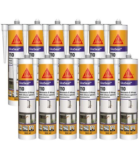 Sika - 12x Mastic silicone Seal 110 Menuiserie & Vitrage 300ml Couleur: Blanc