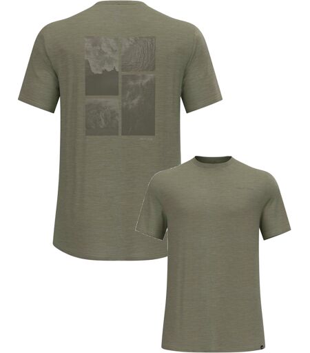 Odlo - T-shirt respirant - Odlo X Pow Merino Tencel T-Shirt Crew Neck S/S M Vetiver Melange pour Homme en Laine - Taille M - Kaki