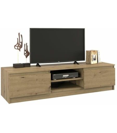 Hucoco - tivoli - Meuble tv style moderne - 140x40x36cm - 2 niches + 2 portes - Rangement matériel télé/audio - Aspect bois