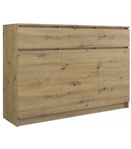 HUCOCO Parme - Commode contemporaine de salon - 120x40x97 - 3 portes & 3 triroirs - Buffet - Meuble de rangement - Aspect bois