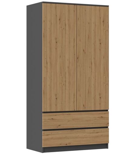 Hucoco - turin - Armoire de chambre style moderne - Penderie multifonctions - 2 portes + 2 tiroirs - Dressing Gris anthracite&Chêne