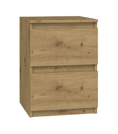 "Cette table de chevet donnera une sensation de chaleur et de douceur à votre intérieur. Elle dispose de 2 tiroirs vous permettant de ranger tous les objets que vous souhaitez avoir à portée de main. Sa structure à la fois harmonieuse et élégante s'accordera parfaitement à la déco de votre chambre POINTS FORTS: 2 tiroirs Fronts modernes sans poignées Joues du meuble sans cache-vis Grande capacité de rangement Finition: aspect bois Fabriqué en Europe CARACTÉRISTIQUES TECHNIQUES: Longueur: 30cm Profondeur: 30cm Hauteur: 40cm Matériau : panneau de particules stratifié À monter soi-même Photos des articles les plus fidèles possible, mais restant non contractuelles, les nuances de couleur et le rendu des matières présentés à l’écran pouvant être différents de la réalité." ...