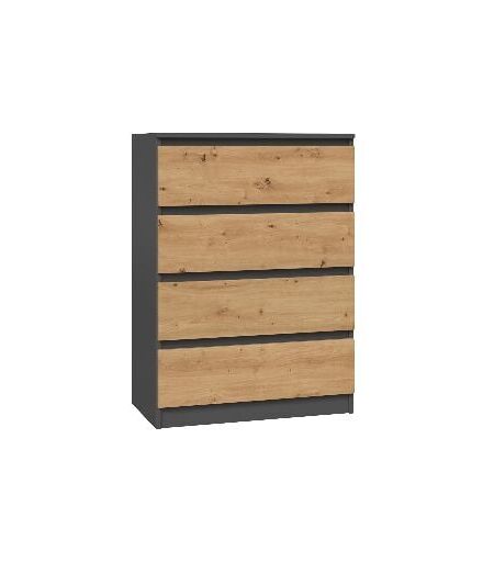 Commode Aster à quatre tiroirs apportera une touche de modernité et harmonie à votre chambre. Avec sa matière, ses lignes épurées et ses détails, elle s'accordera parfaitement à votre intérieur. Sa structure en panneaux de particules mélaminés se caractérise par une grande durabilité et une finition tendance. POINTS FORTS: Style moderne 4 tiroirs Très pratique pour les petits espaces Grande capacité de rangement Finition: gris mat + aspect bois Fabriquée en Europe CARACTÉRISTIQUES TECHNIQUES: Largeur: 70 cm Profondeur: 40 cm Hauteur: 97 cm Structure panneaux de particules mélaminés À monter soi-même Photos des articles les plus fidèles possible, mais restant non contractuelles, les nuances de couleur et le rendu des matières présentés à l'écran pouvant être différents de la réalité. ...