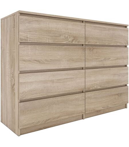 Hucoco - milan - Commode large 8 tiroirs chambre salon - 97x138x40 - Design minimaliste - Meuble de rangement - Aspect bois