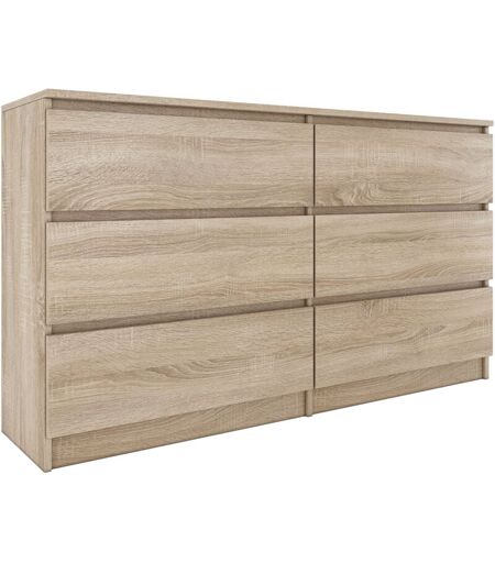 HUCOCO ASTER T6 Commode chambre/bureau/salon 138x40x75 / 6 tiroirs Meuble de rangement moderne Chiffonier Style Scandinave Dressing