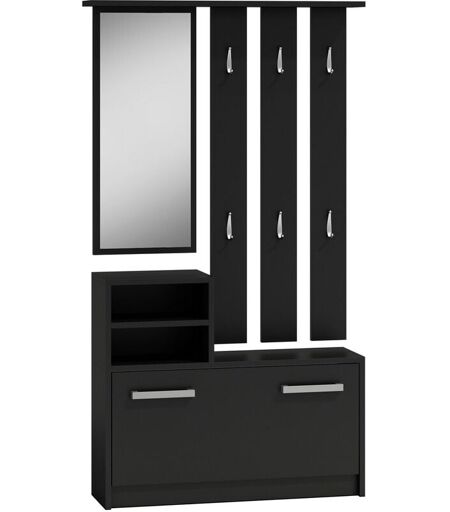 Description générale Ce meuble d'entrée VITTORIA allie praticité et design moderne. Il est équipé de six crochets pour suspendre vos manteaux, d'un grand miroir, de deux niches pour le rangement de petits objets et d'une étagère. De plus, il offre un espace de rangement pour vos chaussures pouvant accueillir jusqu'à 9 paires. Sa couleur sobre et sa finition tendance lui permettent de s'intégrer parfaitement dans tout style d'intérieur. Spécifications techniques Dimensions : 180x85x24 cm Structure en panneaux de particules mélaminés de 16 mm Poignées de haute qualité Bords en PVC Fabriqué en Europe Assemblage aisé Fixations murales non fournies Compatibilité et accessoires Compatible avec divers styles d'intérieur Accessoires de fixation murale non inclus Installation Assemblage simple avec les instructions fournies Fixations murales à prévoir selon vos besoins Utilisation Idéal pour les entrées et les couloirs Permet un rangement organisé des vêtements et accessoires ...
