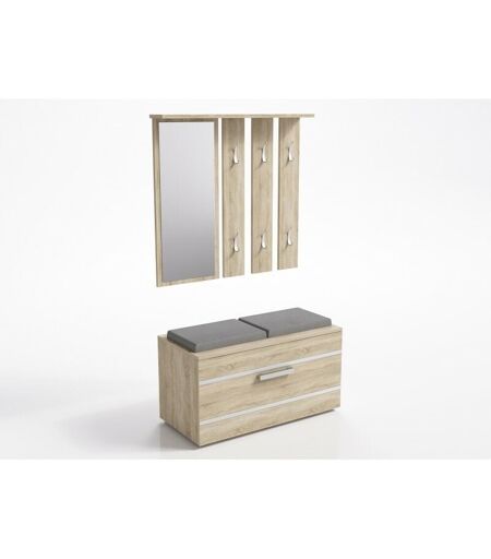 HUCOCO Kathi - Meuble d'entrée avec miroir + banc - 35x85x180 cm - Banc coffre à Chaussures - 6 crochets - Vestiaire Sonoma
