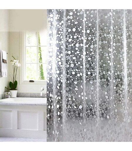 Matériau de haute qualité : notre rideau de baignoire est fabriqué en EVA de haute qualité. Matériau imperméable en EVA, résistant à ;eau, à ;eau, sans distribution ;odeurs, prévient efficacement les moisissures et les bactéries. Durable : les rondelles résistantes à la corrosion réduisent le risque que le rideau de douche se déchire sur les crochets. Nos revêtements de rideau de douche sont plus durables que ;autres avec une meilleure résistance à la moisissure et antibactérienne. Design innovant : motif de galets 3D, processus ;impression stéréo, motif pavé, semi-transparent pour garder votre intimité. Design unique de galets : avec un design de galets 3D de la nature, il protège votre vie privée, mais sert également de décoration élégante. Gardez votre salle de bain sûre et saine. Convient pour la maison, les hôtels, les chambres, les appartements. ...