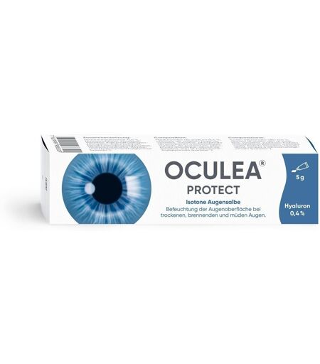 OCULEA® PROTECT contribue à maintenir l’hydratation des yeux et aide à former un film protecteur à la surface de l'œil. Il réduit l'évaporation du film lacrymal chez les patients souffrant de lagophtalmie nocturne (yeux qui restent partiellement ouverts des pendant le sommeil) et atténue les symptômes liés.La nature visqueuse d'OCULEA® PROTECT permet une adhérence prolongée à la surface de l'œil, de sorte que l'effet hydratant et protecteur persiste durant la nuit.La pommade ophtalmique doit être appliquée dans l'oeil, pour la nuit. Elle peut aussi être appliquée sur la peau du contour de l'oeil lors de sécheresse.*Améliore de manière prouvée la qualité du film lacrymal et augmente la quantité de larmes produites.BénéficesProtège et hydrate la surface de l'œilDiminue la formation de croûtes durant la nuitPremière pommade ophtalmique contenant 0,4 % d'acide hyaluroniqueGrande satisfaction des utilisateursEfficacité prouvée*IndicationProtection et hydratation des yeux secs, brûlants et fatigués durant la nuit.Mode d'emploiAvant le coucher, appliquer un petit cordon de pommade dans le sac conjonctival.Appliquer toutes les 3 à 4 heures pendant la journée, si le médecin le prescrit. ...