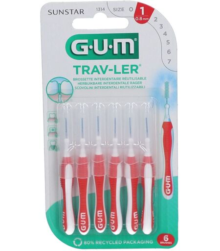 SUNSTAR FRANCE Bougie rouge GUM® Trav-Ler® 0,8 mm avec capuchon Brosse(S) À Dents 6 pc(s)