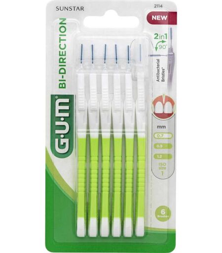 Gum Bi-Direction Brossette Interdentaire 2114 0.7mm 6 Unités