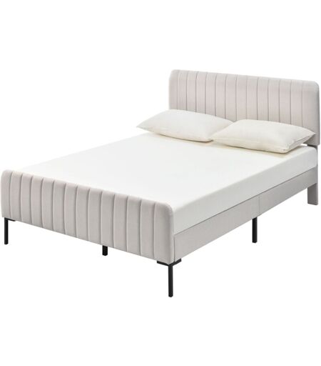 Hommoo - Lit double rembourré 160 x 200 cm, Lin, beige