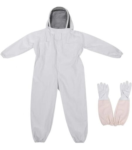 SHINING HOUSE Apicole Costume Équipement de Protection Professionnel Anti Abeille avec Longs Gants et Capuchon en Voile pour Apiculture Apiculteur - Blanc (xl)