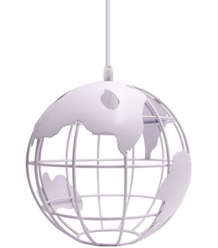 Lampe de conçu original en globe. Couleur Blanc. Style: vintage et industrielle. Matière: fer et peint, inxydable et durable. Diamètre de boule: 20cm. Longueur de Fil: 1m. Couleur: Noir Tension: 220V. Culot E27. Ampoule LED non fournie. Luminaire intérieur parfait pour cuisine, restaurant, couloir, salon, bars, ect. ...
