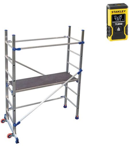 MATISÈRE Echafaudage roulant alu - Hauteur de travail maximale de 2.90m + Télémètre laser STANLEY - P6-LASER
