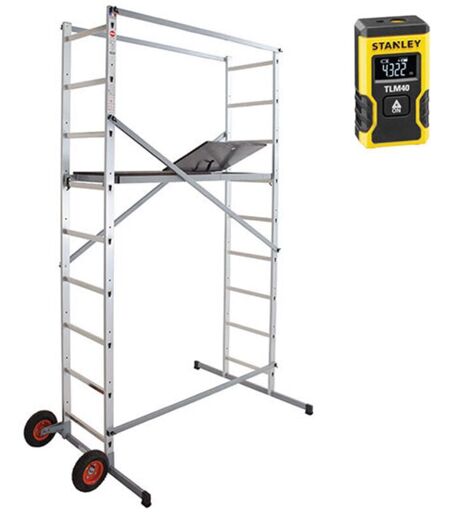 Hailo Echafaudage jardin - Hauteur de travail max. 3,66m - 2 roues Ø 240mm - Plateau 1,30x0,46m + Télémètre laser STANLEY - 9474-951-LASER