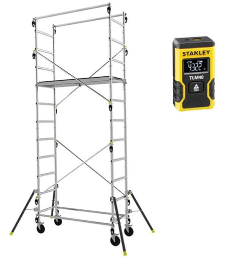 Centaure - Echafaudage roulant alu - Spécial Passage Etroit - Hauteur de travail max 4.7m + Télémètre laser 12m - 347703-LASER
