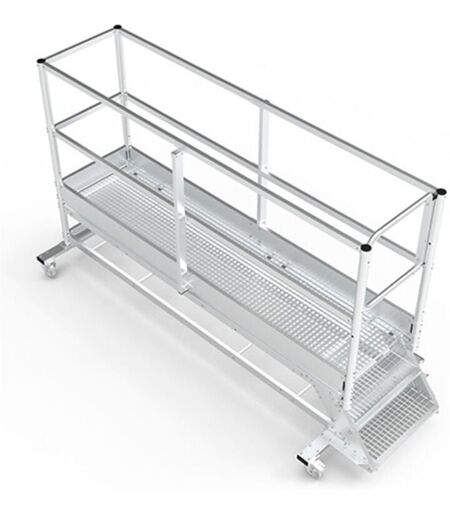 UTILISATIONS - Plateforme pour les chaines de montage, lignes de production, ateliers de fabrication, entrepôts - Estrade pour accéder à un espace en hauteur facilement, pour travailler confortablement - Maintenance de bateaux, avions, camions ou grosses machines dans les usines de fabrication et production. - Faciliter la logistique et la manutention dans des centres de stockage et logistique. - Milieu industriel pour l'installation, réparation ou maintenance de machines. - Accompagner les directeurs sécurité et ingénieurs méthodes dans leur travail - Optimiser la qualité et le rendement : amélioration des process et méthodes PLATEAU ET MARCHES CAILLEBOTIS - Plateforme avec marches et plateau en acier caillebotis - Pour un nettoyage et une propreté de la plateforme optimal. - Supprimer toutes les poussières et saletés facilement et rapidement. SECURITE - Grandes marches d'une profondeur de 16cm. - Nombre de marches plateforme comprise. - Inclinaison de 50° pour une montée et une ...