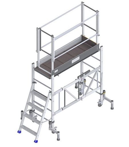 TRAVAIL EN HAUTEUR - Echafaudage idéal pour le passage des portes. - Equipement facile à transporter : encombrement plié minimal. - Installation et maintenance dans divers domaine : énergie, électricité, plomberie... - Utilisations sur chantiers, ateliers, batiments... - Aménagement, pose de signalétique, impression, pose d'adhésif REGLABLE EN HAUTEUR - Plateau réglable tous les 0.30m de 0.30m à 1.50m. - Permet un travail à différentes hauteurs avec le même matériel. BASE PLIANTE - Système accordéon qui permet de solidariser les 2 échelles latérales. - Permet un stockage - Montage qui demande un minimum d'étape : idéal pour des utilisations rapides ou régulières. - Montage facile par une seule personne même sans appui : l'embase est autostable, pas besoin d'appui. FAIBLE ENCOMBREMENT - Embase pliante qui sert de chariot de transport. - Faible encombrement plié : 1.90 x 0.70 x 0.52m - Permet le transoport dans tous types de véhicules utilitaires. MONTAGE FACILE - Montage rapide par 1 ...